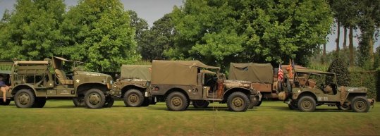 > une dizaine de véhicules militaires présents : dépanneuse Diamond Wrecker, dépanneuse lourde Ward Lafrance, GMC transport de troupe, GMC Atelier, Dodge, Chevrolet Canada et Jeep…