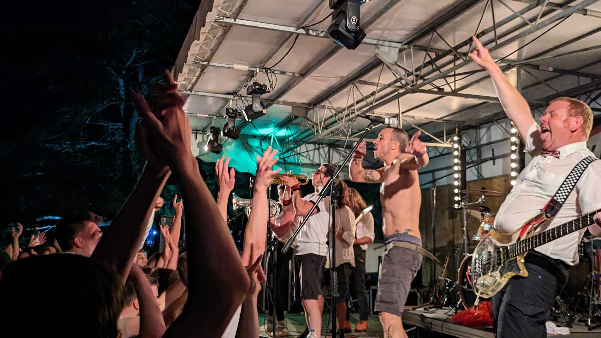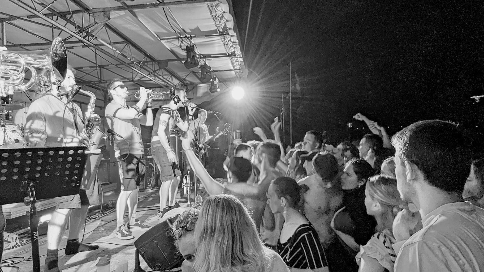Groupe de 9 musiciens sur scène avec différents style musicaux du Reggae/Dub/ska