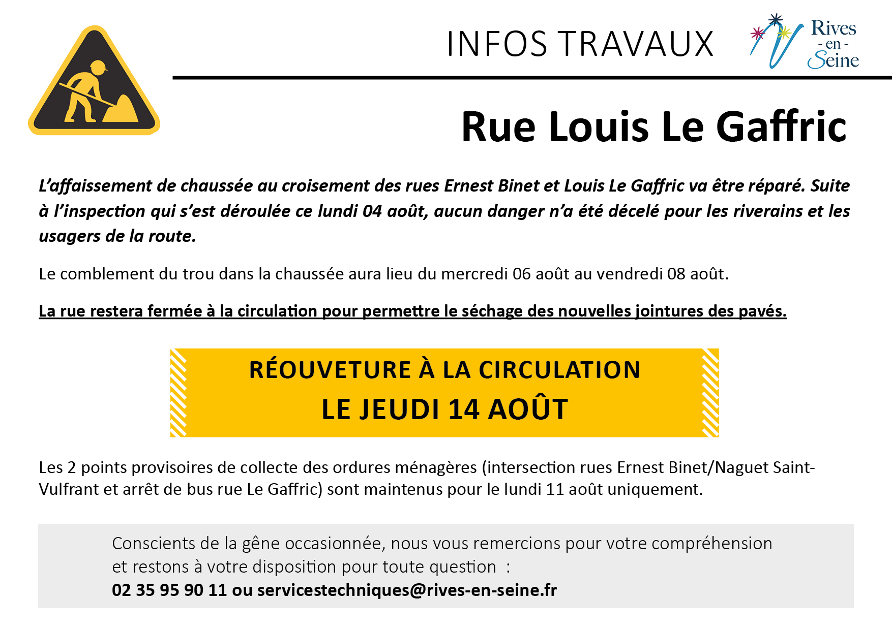 Contact pour toute question : 02 35 95 90 11 ou servicestechniques@rives-en-seine.fr