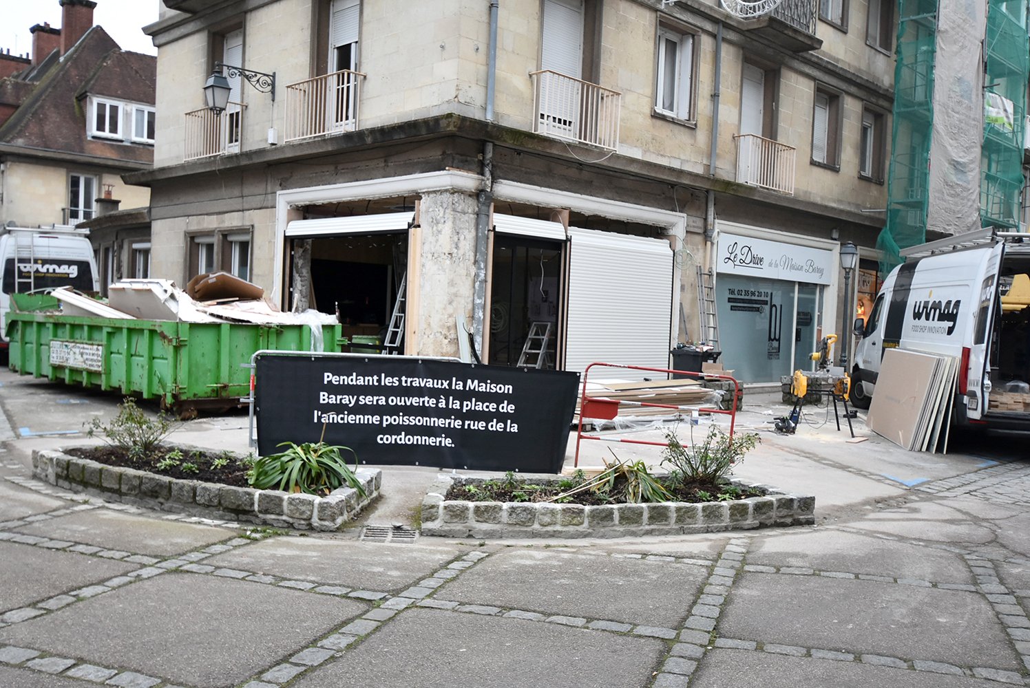 Depuis le 24 janvier, la charcuterie Baray aussi fait peau neuve. Dans quelques jours, le résultat de ce chantier de rénovation sera dévoilé. Pendant les travaux, vous pouvez continuer à vous approvisionner chez eux dans leur local provisoire, situé à l’ancienne poissonnerie, rue de la cordonnerie, à côté d’Olivier Prim’heur.