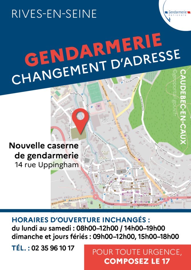 La caserne de gendarmerie de Rives-en-Seine a déménagé et accueille désormais le public à sa nouvelle adresse :