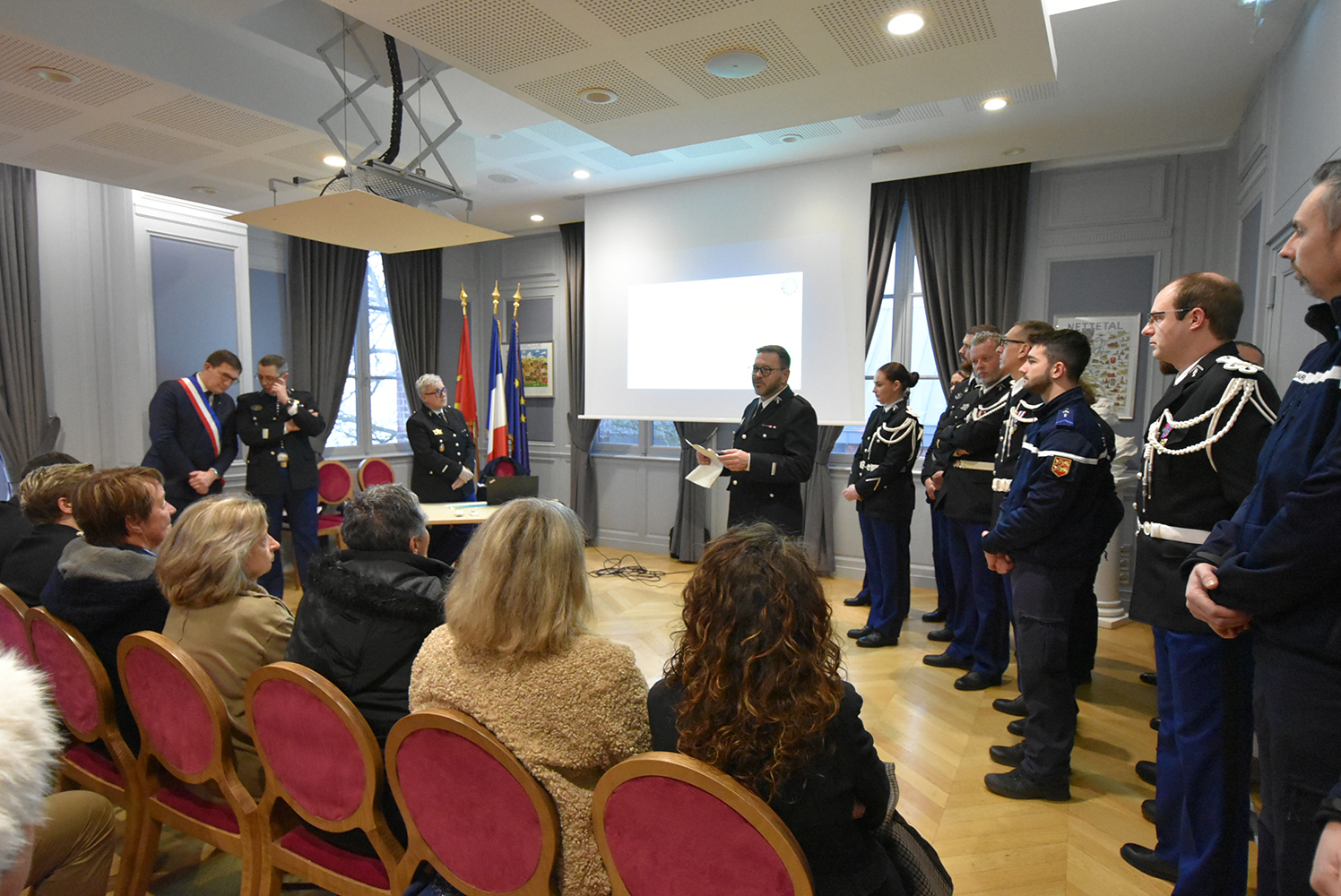Avant la présentation du bilan opérationnel de l’unité en salle des mariages, les nouveaux militaires affectés, ainsi que les promus, ont été présentés sur le parvis.