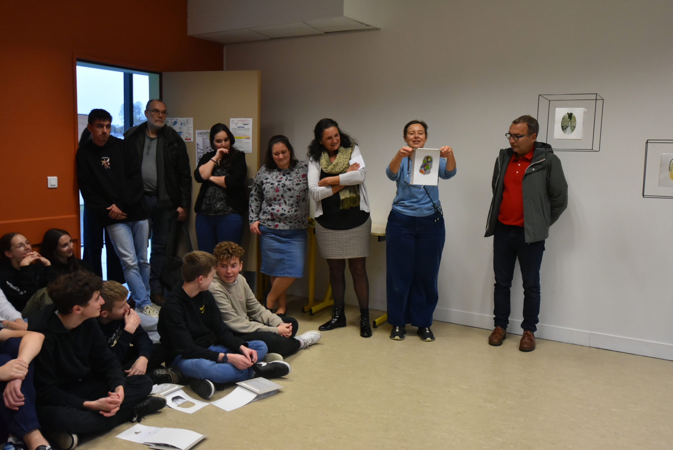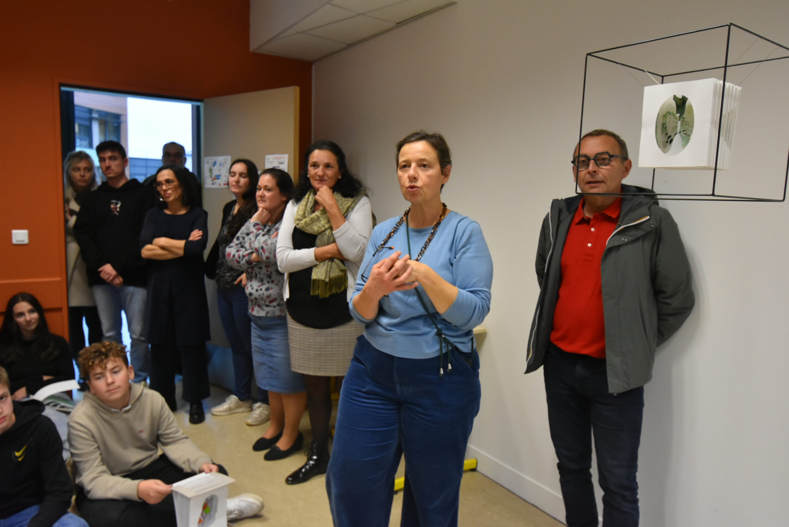 En présence d’une partie de l’équipe de direction, dont la principale Nathalie Schott, et de Sylvain Hémard, Adjoint à la Culture, l’événement a permis à Agnès Frégé de féliciter les collégiens pour leur application et leur rappeler l’importance de l’Art dans la société. En mettant en relation le milieu scolaire et les créateurs contemporains, le dispositif « De Visu » permet une sensibilisation pédagogique des élèves aux questionnements liés à l’Art.