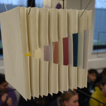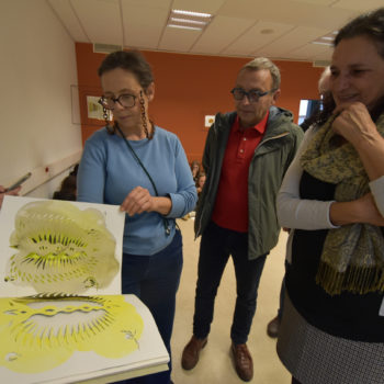 Cette nouvelle exposition, intitulée «OPM – Objet Poétiquement Modifié », présente les oeuvres de l’artiste normande Agnès Frégé créées à partir de papier et de gouache. Dans des structures en métal, elle met en scène différentes anatomies de graines à travers un « livret tunnel » interactif. Pendant deux jours, deux classes de 3e ont travaillé directement avec l’artiste pour confectionner leurs propres créations inspirées de son style, avant de montrer fièrement leurs réalisations à l’occasion du vernissage.