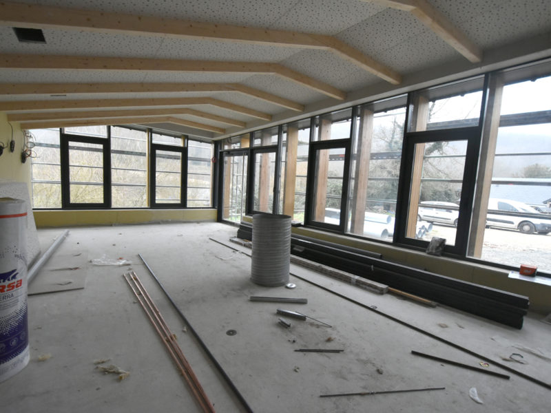 Les équipes sur place sont à pied d’œuvre pour la dernière ligne droite avant les finitions. Tandis que les travaux dans l’espace de restauration sont quasiment terminés, dans la partie technique où se trouve la cuisine il reste encore plusieurs grosses étapes avant d’attaquer peinture, carrelage et autres finitions : la mise en œuvre de la chape, la pose de l’escalier, l’installation des éléments de cuisine et le raccordement électrique définitif…