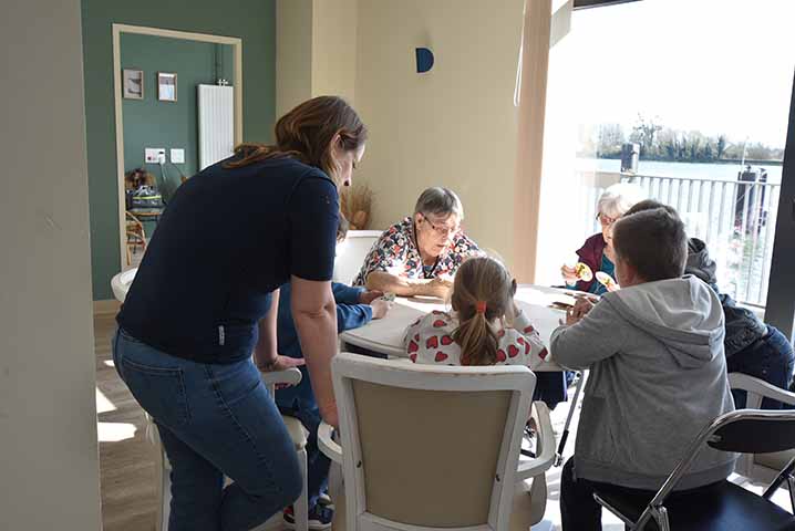 Les enfants avaient préparé des dessins colorés sur le thème du printemps qu’ils ont offerts aux résidents, apportant une touche de douceur et de gaieté à la maison de retraite. Une dizaine de personnes âgées, enchantées par la visite, a participé activement à cet après-midi, ravies de rompre leur routine et de retrouver, le temps d’un après-midi, l’énergie communicative des petits.