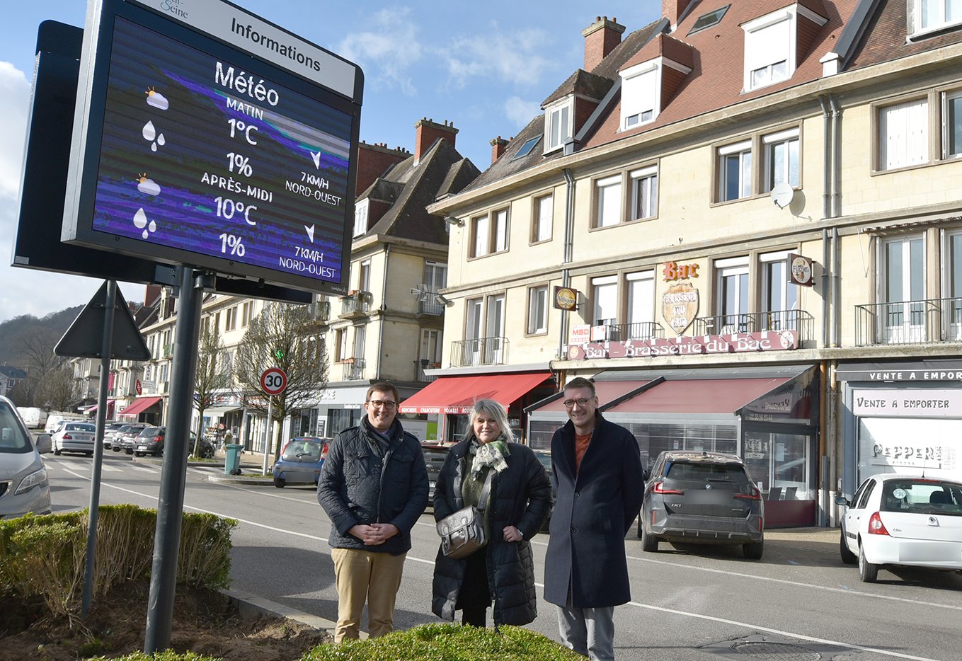 « Le panneau est tombé en panne et le coût de sa réparation était prohibitif. C’était donc l’occasion de le remplacer par un modèle plus moderne, sans changer l’emplacement qui le rend visible par un maximum de personnes, que ce soit les automobilistes, les clients des terrasses ou les piétons », souligne Bastien Coriton, maire de Rives-en-Seine.