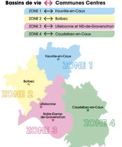 Afin d’offrir une plus grande mobilité aux habitants des communes rurales, il permet soit de se déplacer à l’intérieur de son bassin de vie pour aller vers sa commune centre, soit de traverser le territoire pour se rendre à un pôle de service (Hôpitaux, Pôle Emploi, Caisse d’allocations Familiales, Maisons France Services, Point Justice, Maison des compétences, Soli’Seine, Police Municipale intercommunale, Caux Seine agglo, Centre aquatiques, médiathèques, conservatoire, Musées…). Les bassins de vie sont délimités par 4 zones et leurs communes centres.
