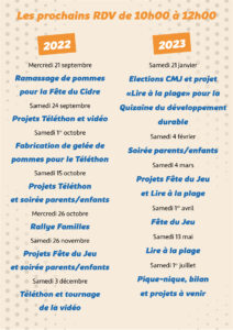 Si votre enfant a entre 10 et 15 ans et qu’il veut faire entendre sa voix et participer à des projets concrets pour la commune, il peut participer à l’une des réunions du CMJ et faire le choix ensuite d’intégrer l’équipe. Plus d’information auprès de la MJ4C qui coordonne le CMJ avec la municipalité : 02 32 70 37 15 ou secretariat@mj4c.fr