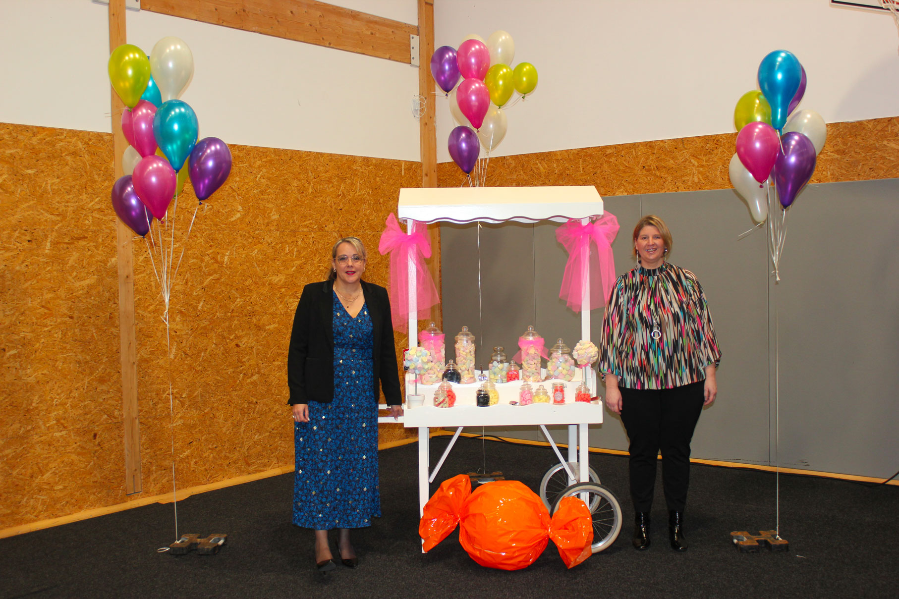 Grâce aux bénévoles du CCAS, le gymnase était joliment décoré sur le thème de la gourmandise avec des ballons, des sculptures de bonbons et des accessoires colorés choisis avec attention.
