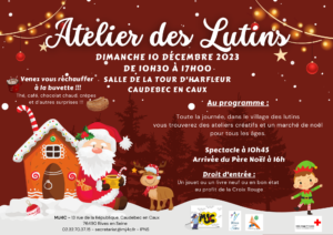 Le traditionnel ATELIER DES LUTINS de la MJ4C aura lieu le dimanche 10 décembre 2023 à la salle de la Tour d’Harfleur de Caudebec-en-Caux.