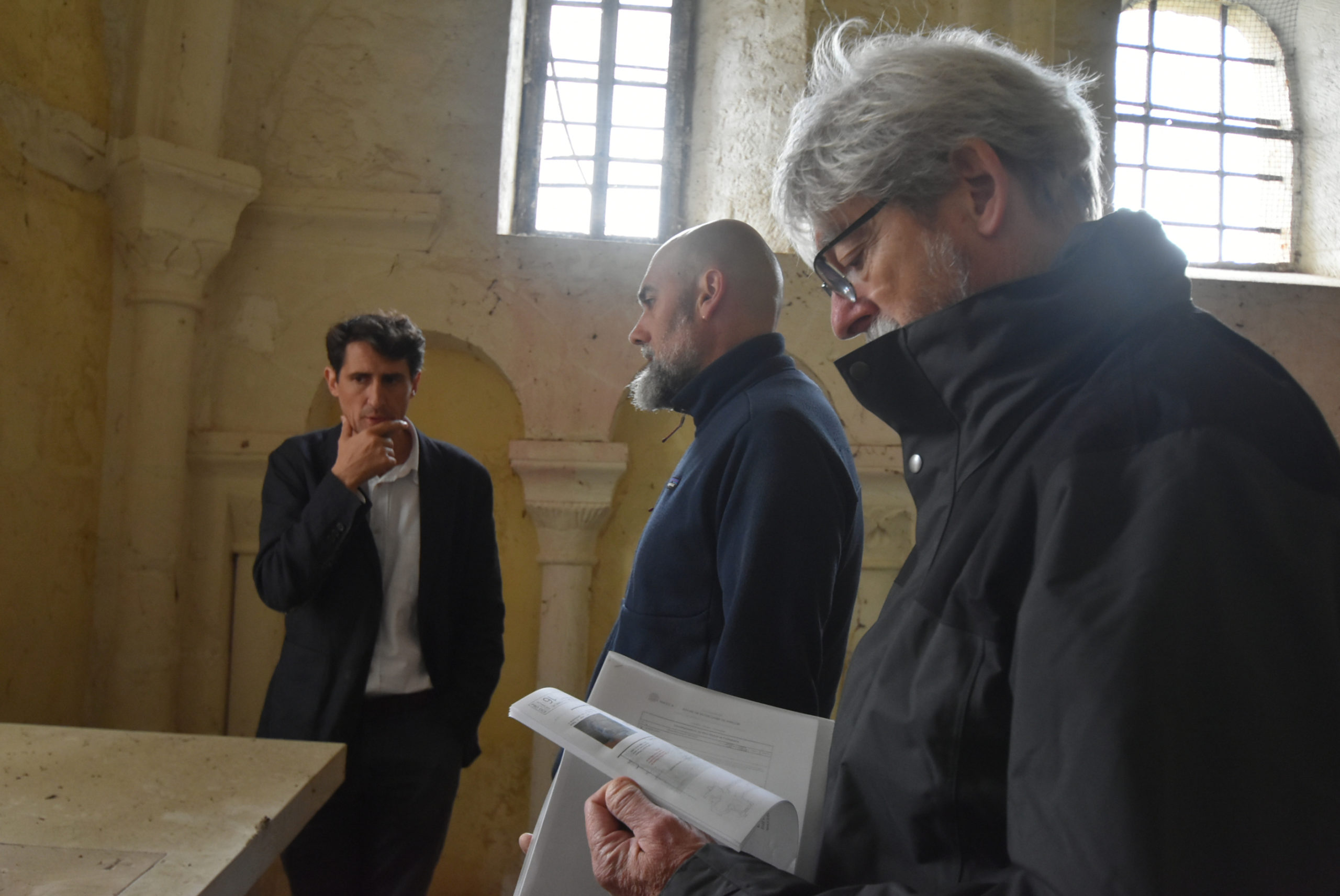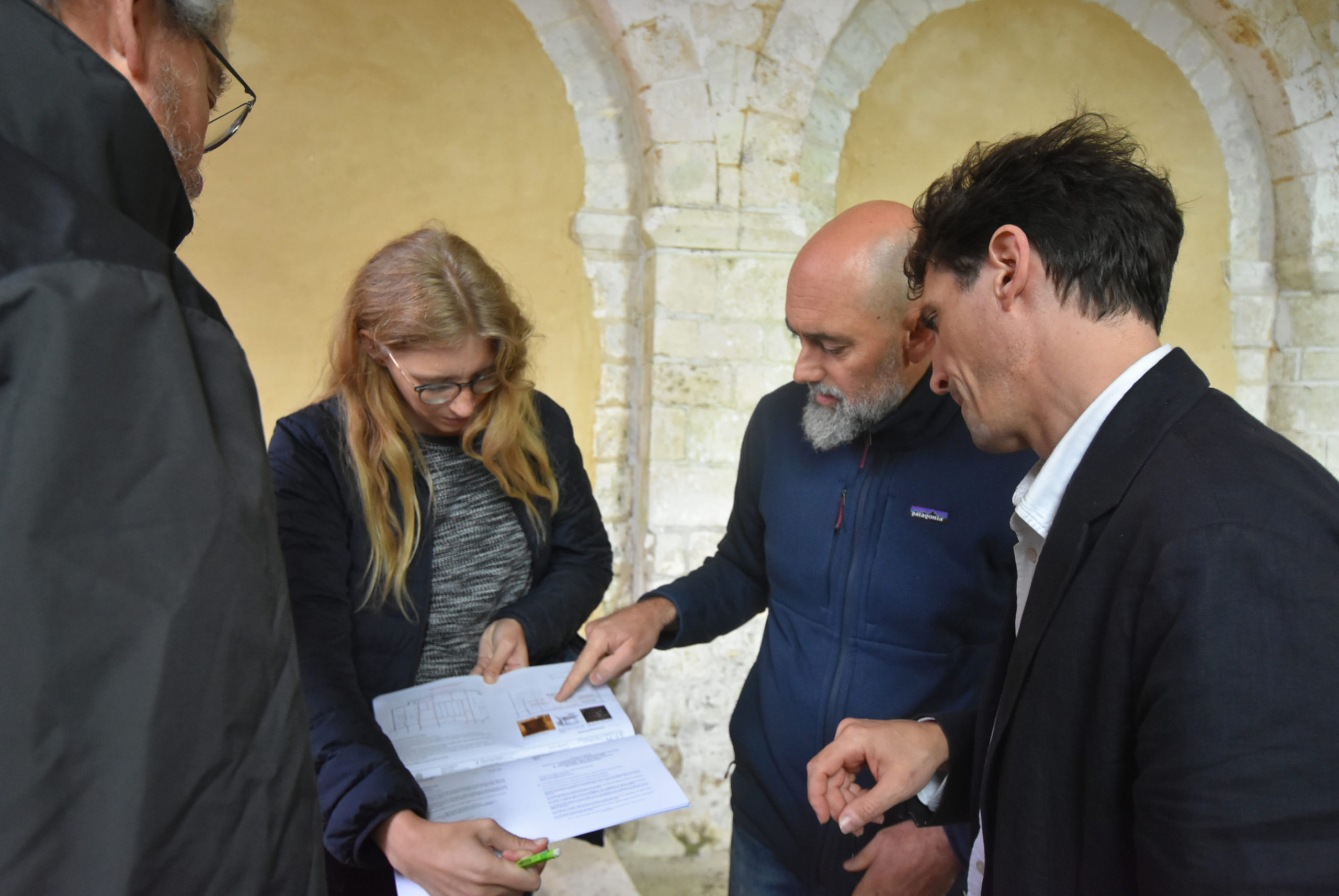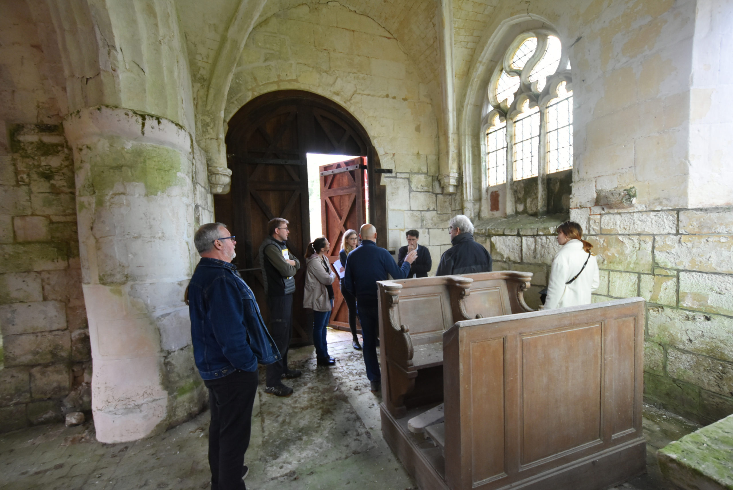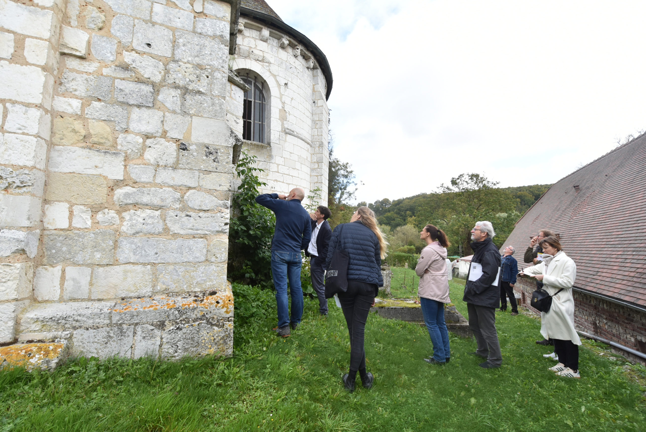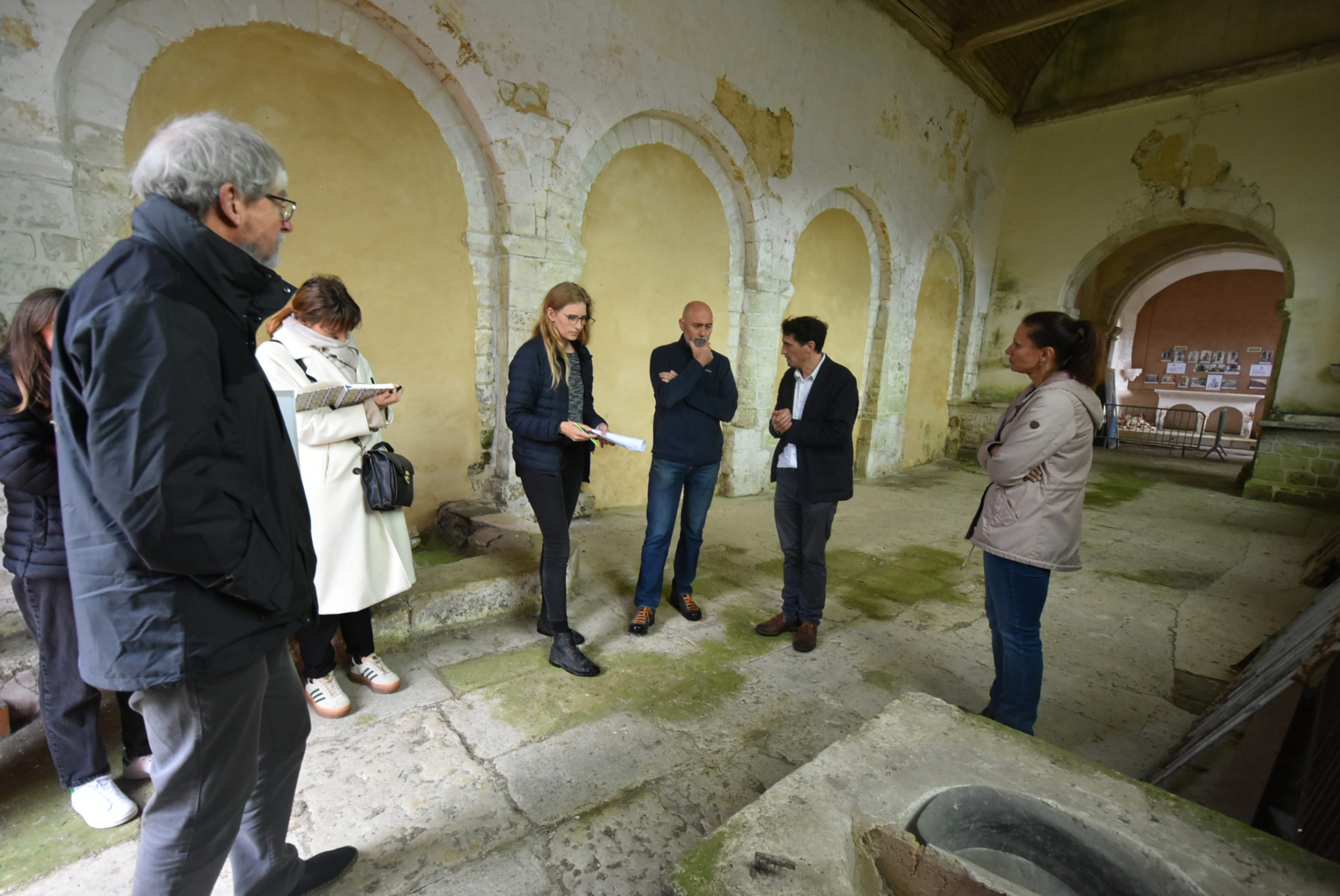 Mardi 8 octobre, la directrice des Services Techniques Aurore Vitcoq réunissait sur place Lionel Duramé, Adjoint au Maire, Judicaël De la Soudière Niault, architecte du Patrimoine du cabinet Nasca, le président de l’association Alain Cornut-Gentille, et les entreprises Normandie Rénovation et Mori-Ma.