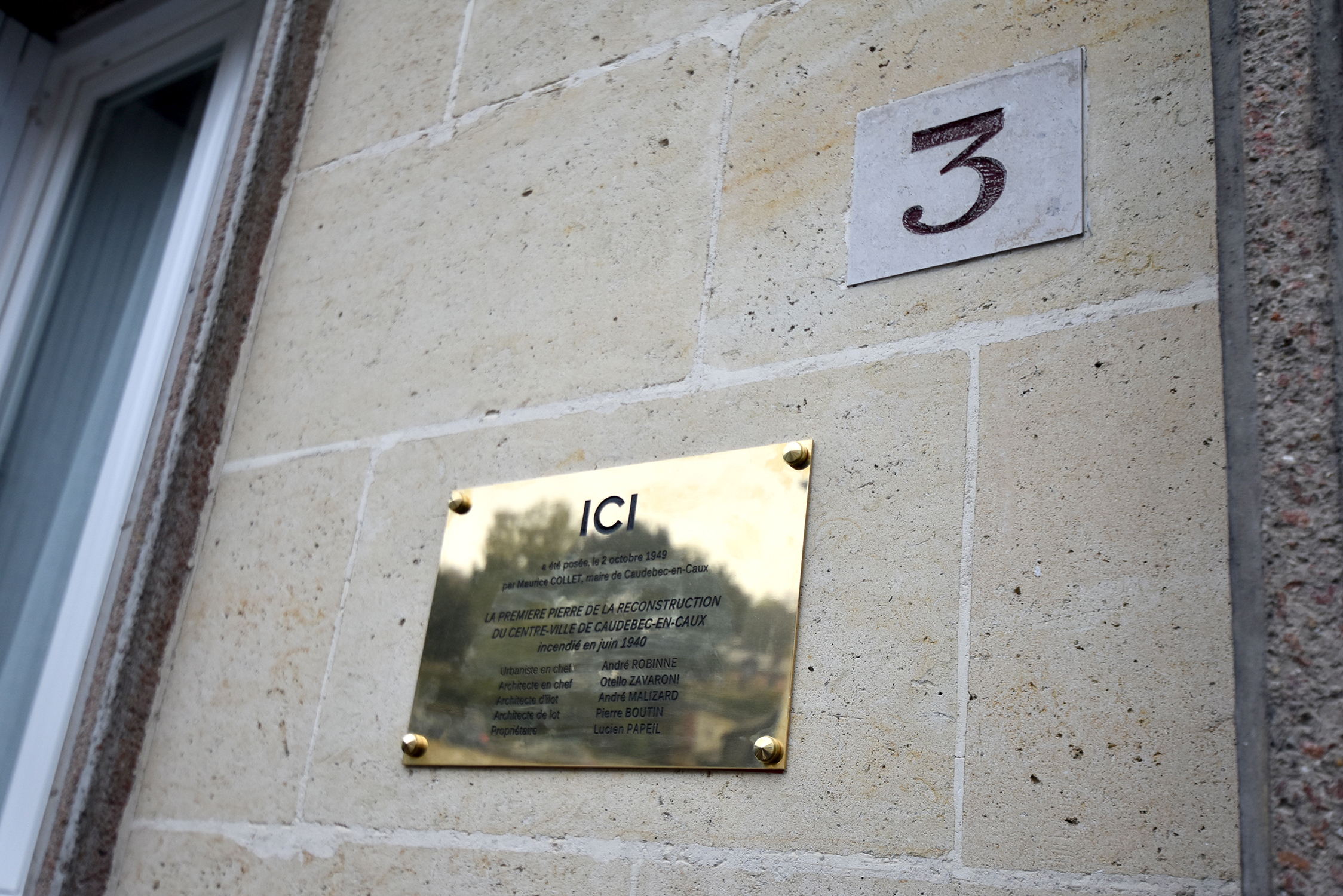 Vendredi 03 avril 2026, la commune de Rives-en-Seine a dévoilé une plaque commémorative sur une maison emblématique de Caudebec-en-Caux : celle où a été posée la toute première pierre de la Reconstruction de la ville, dans la rue Aristide Cauchois.