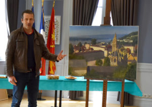 Dans le cadre de la campagne de mécénat pour restaurer la flèche et le clocher de l’église Notre-Dame de Caudebec-en-Caux, la commune de Rives-en-Seine a commandé une toile à l’artiste peintre Olivier Desvaux.