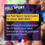 SPORT Pass Sport Par le Ministère des Sports Le Pass’Sport est une déduction de 50 euros pour rejoindre un club éligible et pratiquer son sport favori. La règle du jeu : cette aide est personnelle et ne peut servir qu’une seule fois. Cette aide ... Article publié le lundi 12 septembre 2022