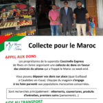 Les propriétaires de la superette Coccinelle Express de Rives-en-Seine organisent une collecte de dons en faveur des sinistrés du séïsme qui a frappé le Maroc ce week-end. Collecte de produits de première nécessité Vous pouvez déposer vos dons sur ... Article publié le jeudi 14 septembre 2023